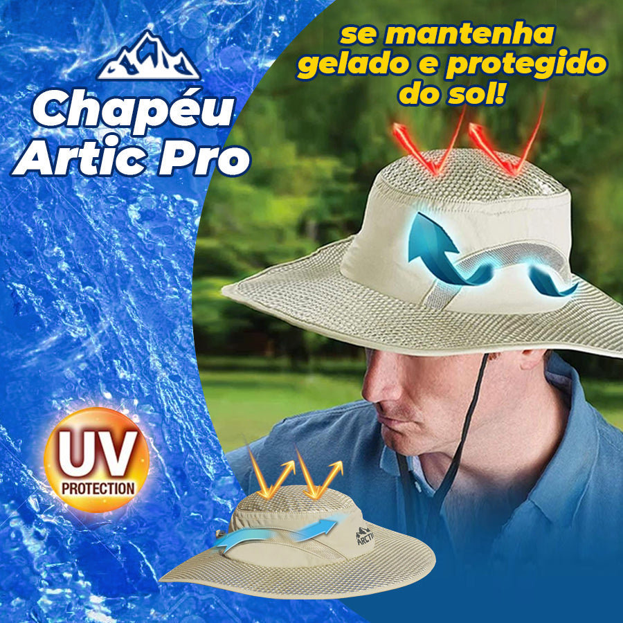 O incrível chapéu Artic Pro possui uma barreira UV integrada que reflete 80% do calor do sol e 99% dos raios UV prejudiciais, te mantendo protegido enquanto curte o verão!