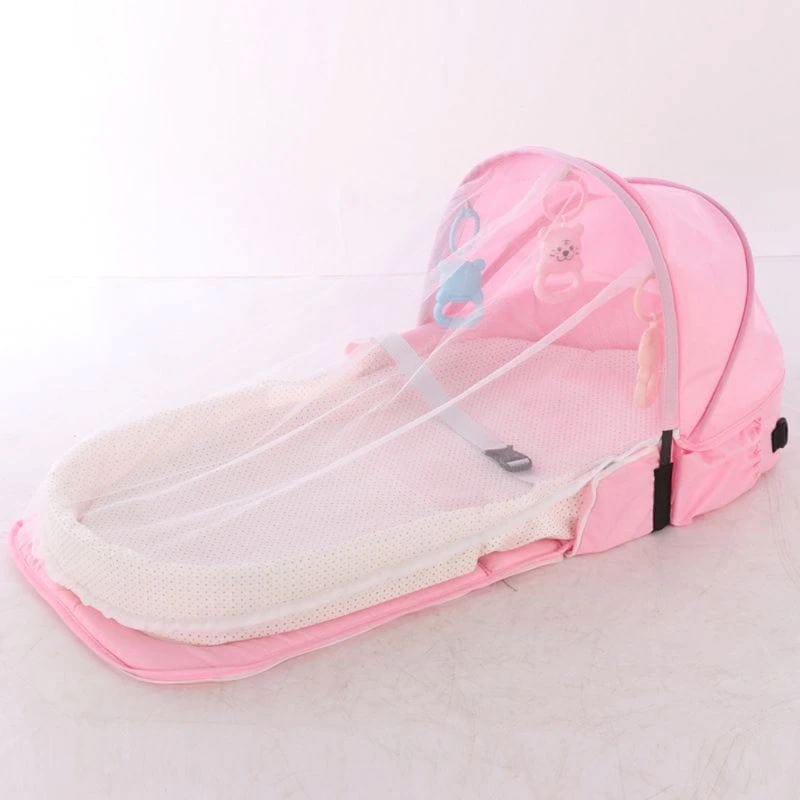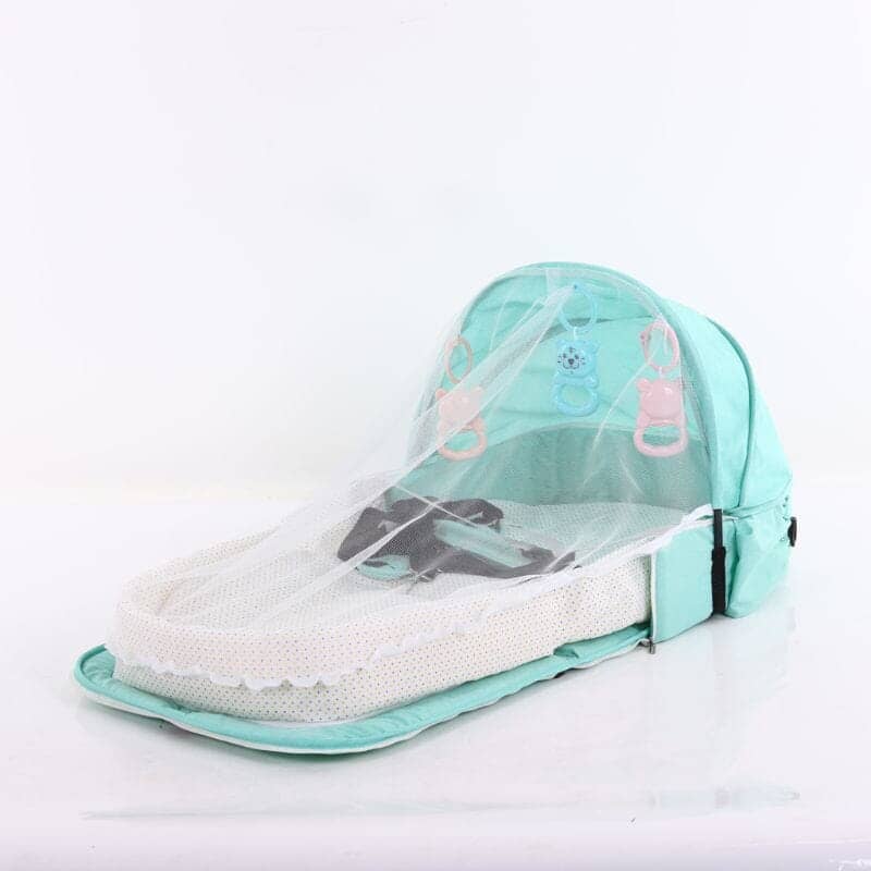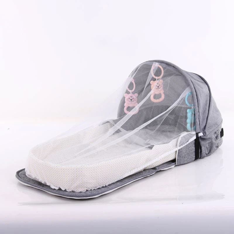 1* Cama de bebê, com proteção para cabeça e cortina contra mosquitos + Brinquedos especiais de brinde