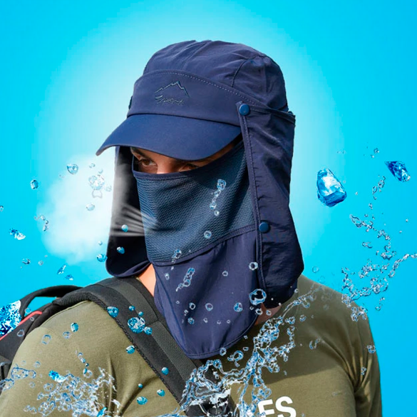 Com proteção total contra raios ultra violetas e 100% contra a água, seu rosto cabeça pescoço e olhos totalmente protegidos do sol neste verão