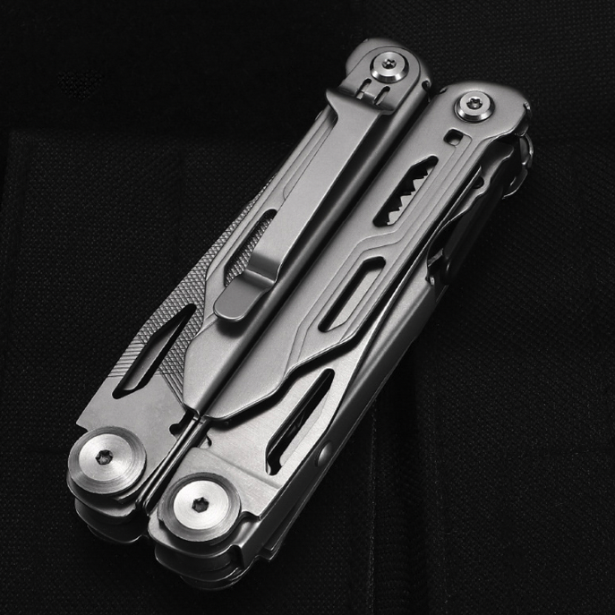 Alicate afiado, Base dentada para corte de alta precisão, Cortador de fios, Lixa de Unha, Chave de Parafuso, Pequena chave de fenda, Canivete, Serra de corda, Chave de Fenda cruzada, Raspador, Abridor de Garrafas, Chaveiro