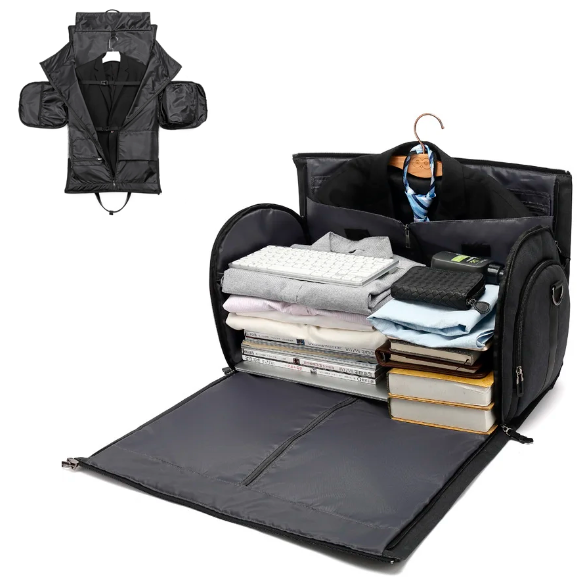 Leve ternos, camisas, camisetas, calças e tênis com o máximo de conforto e praticidade, sem amassar e com proteção total contra líquidos e rasgos