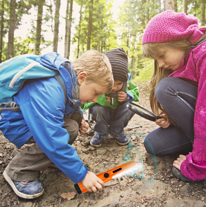 Com sua potente lanterna LED integrada, encontre itens valiosos até mesmo em cavernas ou águas pouco iluminadas!