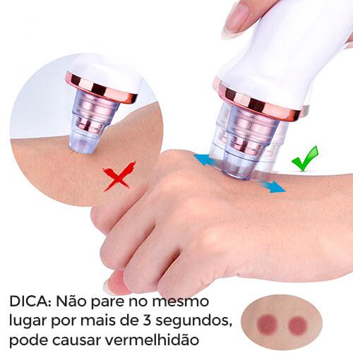 4) Deslize-o sob seu rosto no local de sua necessidade em movimento contínuo, lembrando sempre de não deixar mais de 3 segundos no mesmo lugar;