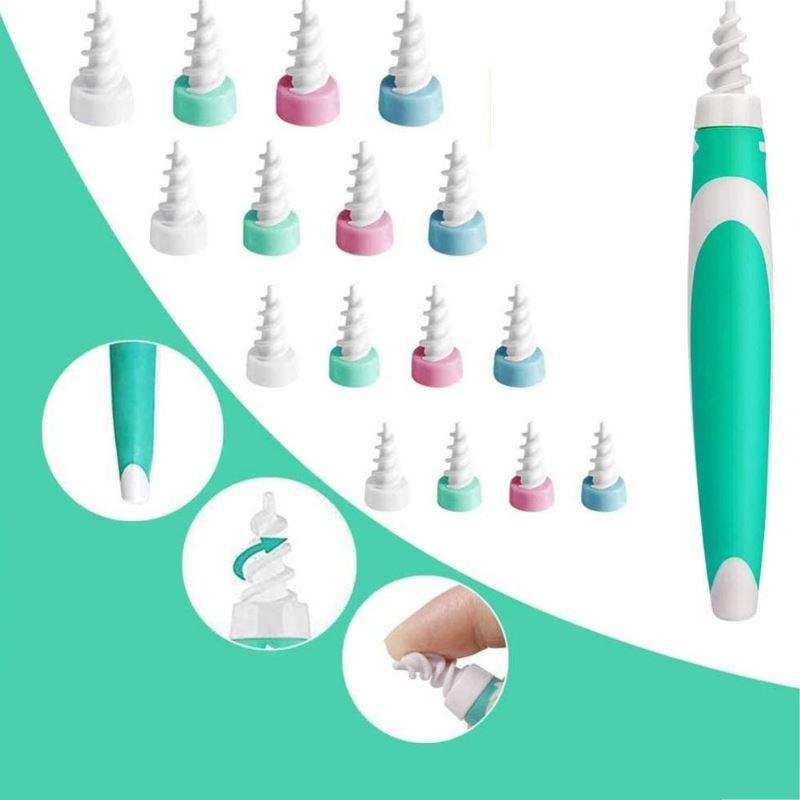 Limpe seus ouvidos de maneira inteligente! Simplesmente gire a alça e a ponta macia e flexível com ranhuras em espiral remove facilmente a cera do ouvido.
