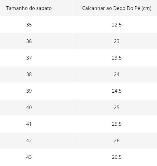 Escolha o tamanho de acordo com a medida de seu pé: